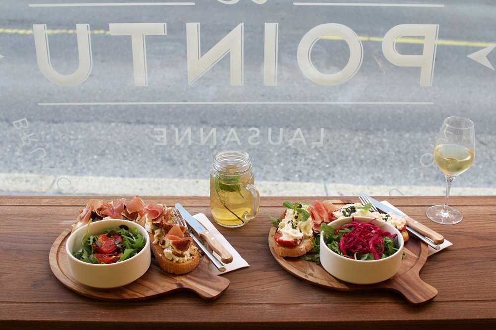 Le brunch du week-end chez Le Pointu propose une carte gourmande composée de plats sucrés et salés, entièrement faits maison, dans une ambiance conviviale et sans chichi au cœur de Lausanne.